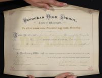 High School Diploma, document, The image shows an antique diploma from